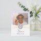 Personalized Birthday Party Invitation POSTCARD SAMPLE -- fully customizable faux pocket photo invitations with antique lavender damask background and elegant Monogram button on white ribbon. Add your own photo and customize the name, date, and details for the happy occasion. Perfect for both contemporary or vintage photos. Can easily be customized for Anniversary parties, weddings, bridal shower, retirement, and other special occasions. Matching envelopes, postage and thank you cards available. **NOTE: Sized for POSTCARDS. Envelopes are NOT included. Other invitation sizes and styles available in gallery.
