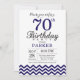 70th Birthday Invitation with Navy Blue Chevron. Black and White. Adult Birthday. Man or Women Bday Invite. For further customization, please click the "Customize it" button and use our design tool to modify this template.