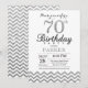 You can pick to download your 70th Birthday Invitation Silver Glitter from 4 file types: PNG, JPG, Standard PDF, and Print PDF. These 4 file formats have been selected so they cover all your inviting needs. PNG and JPG are great for sending your invitation digitally and PDF and Print PDF are great if you want to print your invitation yourself.
