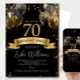 70th Birthday Invitation Template: Black & Gold Ba