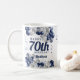 A gorgeous navy and silver balloon happy 70th (or any age) birthday mug. This fabulous design is the perfect way to wish someone a happy seventieth birthday (or change the age!) Personalize with our own custom name and message. Blue colored typography and gorgeous navy blue and silver balloons.