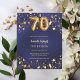 A modern, stylish invitation for a 70th birthday. A navy blue background, decorated with golden stars. The blue color is uneven. Personalize and add your name and party details.
