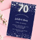 70th birthday navy blue silver stars invitation postcard