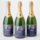 70th Birthday Navy Blue & Silver Stars Custom Photo Wine Label