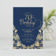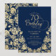 Plain white envelopes are included with paper invitations and will come to fit the invitation size you select. If you don’t need the envelopes, you may choose to not receive them by selecting the dropdown below "Envelopes" and choosing "None." If you’d like to have a design on your envelopes, you can browse all of these available envelopes to find the design that complements your 70th Birthday Navy Gold Roses Invitation.