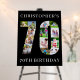 70th Birthday Party easel sign - perfect to welcome guests, provide a photo prop and create a fun "do you remember when .. ?" talking point. The photo template is set up for you to upload your pictures to form the number 70. The template uses a mix of square, portrait and landscape formats to help you find the best spot for your favorite pics. You can also personalize the design with the name of the person turning 70 years old.