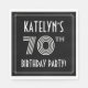 This 1920s-1930s style inspired seventieth birthday celebration/party paper napkin design features a customizable name, a fancy art deco look inspired number “70th”, the message “BIRTHDAY PARTY!”, and a multi-line border. The background is colored black by default, but it can be customized to a different color, if desired. Elegant birthday themed paper napkins like these might be used at a birthday party for somebody who is celebrating their 70th birthday. [~Z0000616]