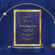 On front: A trendy, modern 70th birthday party invitation card for men. A dark blue, navy blue background. The blue color is uneven. With a faux gold frame and golden confetti, golden colored letters. Templates for your party information. Back: white background.