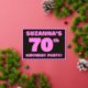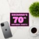 The front of this bold and fun seventieth birthday celebration foil invitation/announcement card features a customizable name, a large number “70th”, the message “BIRTHDAY PARTY!”, and a border, all featuring a girly dark pink and light pink stripes pattern. The back features personalized details about the event, such as the date, time, location, and any other relevant information. Editable invitations like these might be used to invite guests/attendees to a birthday gathering being held to celebrate somebody’s 70th birthday. [~Z0000597]
