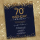 Elegant Faux gold glitter with shimmering confetti highlights on the top and bottom border. All text is adjustable and easy to change for your own party needs. Great elegant 70th birthday template design.