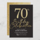 70th Birthday Party Elegant Black & Gold Glitter Invitation