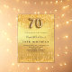 A modern, stylish and glamorous invitation for a 70th birthday party. A faux gold metallic looking background with faux glitter drips, paint dripping look. The name is written with a modern hand lettered style script. Personalize and add your party details. Number 70 is written with a balloon style font, script.