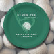 Celebrate in style with this golf-themed milestone birthday paper plate, featuring the clever pun "Seven-Tee (and still on par)" for a fun and sporty touch. Set against a vibrant green background, this design showcases a bold golf club and tee illustration, with a customizable name for the birthday honoree inside the golf ball. Fully customizable, this napkin is ideal for golf-themed parties, milestone birthdays, and sports enthusiasts. Personalize yours today for a unique and memorable event!