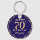 70th Birthday Party Navy Blue and Gold Glitter Keychain