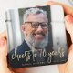 These custom 70th birthday coasters feature the guest of honor's personalized photo, name, and birthday, along with the words "cheers to 70 years" in modern gold-colored handwriting script. A dark screen helps make the text pop. A great way to celebrate someone who's turning seventy!