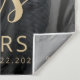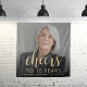 This custom 70th birthday tapestry features the guest of honor's personalized photo, name, and birthday, along with the word "Cheers" in elegant gold-colored calligraphy script. A dark screen helps make the text pop. A great way to celebrate someone who's turning seventy!