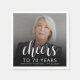 This custom 70th birthday napkin features the guest of honor's personalized photo, name, and birthday, along with the word "Cheers" in elegant white calligraphy script. A dark screen helps make the text pop. A great way to celebrate someone who's turning seventy!