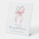 A pretty blush pink coquette bow is accented by small, dainty blue and pink wildflowers. Three lines of text below let you personalize the sign. All text is editable.