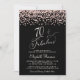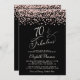 70th Birthday Party Rose Gold Glitter Black Invitation