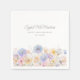 An elegant watercolor floral bouquet of vintage flowers decorates the top of this 70th birthday party custom cocktail napkin. The soft pastel flowers are accented with modern line art. The birthday celebrant's name and birthday follow. All text is editable.