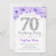 70th Birthday Party - White Silver Purple Invitation