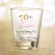 Elegant and chic 70th birthday party shot glass. "70 & Fabulous" is written in a a stylish gold, pink and black script and you can personalize with her name and the party date.