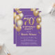 70th Birthday Purple and Gold Glitter Balloons Invitation
