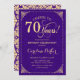 Plain white envelopes are included with paper invitations and will come to fit the invitation size you select. If you don’t need the envelopes, you may choose to not receive them by selecting the dropdown below "Envelopes" and choosing "None." If you’d like to have a design on your envelopes, you can browse all of these available envelopes to find the design that complements your 70th Birthday Purple Gold Damask Invitation.