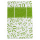 This over-the-hill numeric design is a green and white random number pattern with a green milestone number 70 repeated in varied sizes and angles over a white background. There is a printed banner and a gift tag with text templates so you can easily personalize any or all of the text.
