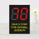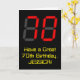 The front of this silly and nerdy birthday greeting card design features a large number "70" with a red seven segment digital display style appearance, along with the message "Have a Great 70th Birthday," and a custom name, on a black colored background. The inside features a customized birthday greeting message, or could perhaps be cleared and left blank if a message is to be written by hand instead. A customizable birthday card like this might be a fun way to send birthday wishes to somebody who is celebrating their seventieth birthday. [~Z0000386]