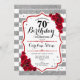 70th Birthday - Red Silver White Stripes Roses Invitation
