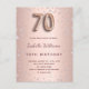 A modern, stylish and glamorous invitation for a 70th birthday party. A faux rose gold metallic looking background with pink diamonds. The name is written with a modern dark rose gold colored hand lettered style script. Personalize and add your party details. Number 70 is written with a balloon style font, script.