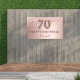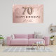 Elegant, classic, glamorous and girly for a 70th birthday party. Rose gold and blush pink, gradient background. Decorated with rose gold, pink faux glitter drips, paint dripping look. Personalize and add a name. With the text: Happy Birthday plus the birthday girls name. The text is written with a modern dark rose colored hand lettered style script. Number 70 is written with a balloon style font.