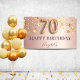 Elegant, classic, glamorous and girly for a 70th birthday party. Rose gold and blush pink, gradient background. Decorated with faux gold stars. Personalize and add a name. With the text: Happy Birthday. The name is written with a modern dark rose colored hand lettered style script. Number 70 is written with a balloon style font.