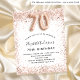 For an elegant 70th birthday. A white background. Decorated with rose gold, pink faux glitter, sparkles. Personalize and add a name, and party details. The name is written with a hand lettered style script, number 70 with balloon style fonts.