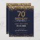 Elegant Faux gold glitter with shimmering confetti highlights on the top and bottom border. All text is adjustable and easy to change for your own party needs. Great elegant 70th birthday template design.