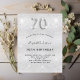 A modern, stylish and glamorous invitation for a 70th birthday party. A faux silver looking background, decorated with sparkles. Personalize and add your name and party details. Number 70 is written with a balloon style font, script.