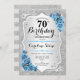 70th Birthday - Silver Stripes Blue Roses Invitation