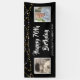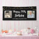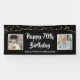 Celebrate a 70th birthday and welcome party guests with this editable black banner sign featuring two photos (perhaps THEN and NOW pictures of the birthday man or woman) with a border of gold and white string lights. EDITABLE COLOR: The black background color and text fonts and color can be changed to coordinate with your party color scheme by clicking on the CUSTOMIZE tab.