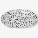 This cool design is a black and white random number pattern with milestone number 70 repeated in varied sizes and angles in an all-over print.