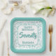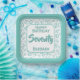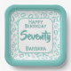 This over-the-hill design has a teal and white random number pattern with milestone number 70 repeated in varied sizes and angles. There is a white rounded square in the center for your text and teal and white around the rim.