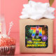 This fun and joyful birthday square sticker design features a large number “71” with a colorful rainbow spectrum gradient inspired pattern, along with the message “Happy 71st Birthday,”, and a customizable name. The background features an exciting and colorful pattern inspired by the appearance of bursting celebratory fireworks. Fun, personalized stickers like this might be given as a birthday present, or used while wrapping presents, or perhaps used as a birthday party decoration when celebrating somebody’s 71st birthday. [~Z0000579]