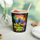 This cheerful and colorful birthday themed paper cup design features a large number “71” with a rainbow spectrum gradient inspired pattern, along with the message “Happy 71st Birthday,”, and a customizable name. The background features an exciting and colorful pattern inspired by the look of bursting celebratory fireworks. Colorful, vibrant paper cups like this might be fun to use at a birthday celebration/party being held to honor somebody’s 71st birthday. [~Z0000539]