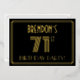 The front of this 1920s-1930s style inspired and vintage-appearance seventy-first birthday celebration/party foil invitation features an editable name, a large art deco look inspired number “71ST”, the message “BIRTHDAY PARTY!”, and a border pattern consisting of lines. There is a black-colored background on the front by default, but it can be customized to a different color if desired. The back features personalized details about the event, such as the date, time, location, and any other relevant information. Luxurious, elegant, editable invitations like these might be used to invite guests to a birthday celebration being held to celebrate somebody’s 71st birthday. [~Z0000590]