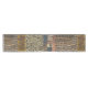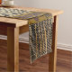 a fabulous table runner in earth tones with a dramatic flair... 72 inches long, 14 inches wide. tribal inspiration and ethnic textile influence. ocher and black, brown and khaki.