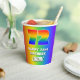 This exciting and joyful birthday-themed paper cup design features a large number “72” with a colorful rainbow spectrum inspired gradient pattern, along with the message “HAPPY 72nd BIRTHDAY,”, and a custom name. The background also features a cheerful multicolored rainbow spectrum inspired gradient pattern. Vibrant birthday themed paper cups like this might be used at a birthday party in celebration of somebody’s 72nd birthday. [~Z0000576]