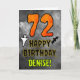 The front of this spooky and scary Hallowe’en themed birthday greeting card design features a large number “72”, along with the message “HAPPY BIRTHDAY,”, and a customizable name. There are also depictions of a bat and a ghost on the front. The inside features a customizable birthday greeting message, or could perhaps be cleared and left blank if a message is to be written by hand instead. A customizable birthday card like this might be a fun way to send a message in celebration of somebody’s seventy second birthday that also falls on October 31st (Halloween). [~Z0000547]