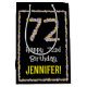 This fun, nature-inspired birthday gift bag design has the message “Happy 72nd Birthday,” along with a personalized recipient name. The large number “72” plus the border feature flower icons. A floral birthday themed gift bag like this might be a fun way to wrap a gift or present being given to somebody who is celebrating their seventy-second birthday. [~Z0000653]