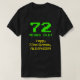 This silly and nerdy shirt design has the message "72 YEARS OLD!", the birthday greeting message "Happy 72nd Birthday,", and an editable name. The upper age digits and text feature a nerdy, pixelated, green, 8-bit graphics style appearance inspired by that of classic computer games and vintage video games. The lower greeting message has a geeky, yellow, vintage digital computing inspired look. Shirts like this might be worn by the attendees at a birthday party being held to celebrate the 72nd birthday of somebody who likes vintage video games or computers. [~Z0000455]