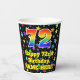 This colorful and exciting birthday paper cup design features a large number “72” having a rainbow spectrum gradient inspired pattern. It also features the message “Happy 72nd Birthday,”, and a custom name. The background features an exciting and colorful pattern inspired by a field of stars. Vibrant, colorful paper cups like this might be fun to have at a birthday celebration being held to celebrate somebody’s 72nd birthday. [~Z0000540]